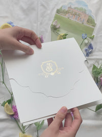 Additionally, as a personal touch, the invitation features a hand-painted watercolor of the The Old Rectory Estate in Bletchingley, chosen by the client.