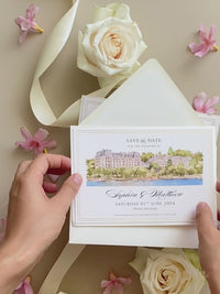 Watercolor Venue Save The Date with Gold Foil | Beau-Rivage Palace, Swiss Riviera