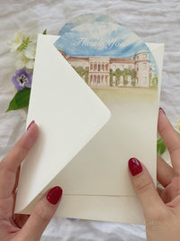 Tarjetas de agradecimiento del arco | Dibujo de lugar de acuarela | Comisión a medida H&B