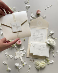 Carpeta de lujo Timeless color champán perlado con tarjeta Rsvp