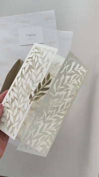 Esta magnífica invitación plegable para el día de la boda viene con un bolsillo con efecto de niveles con capacidad para hasta 4 encartes.